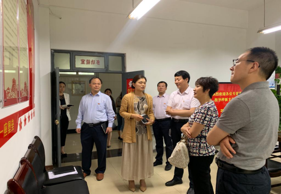 总支书记梁燕玲向专家介绍第二支部阵地建设
