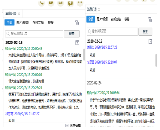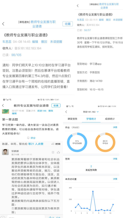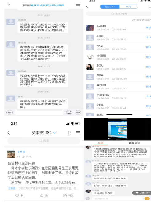 2020年春季,《教师专业发展与职业道德》是2018级师范专业员工开设的一门教师教育必修课。这门课程由王奎群、车思蕊、闵斯思、孙宁、魏睿、赵丹卉、刘泽林、祈芬芬8名教师共同承担,我们组成了《教师专业发展与职业道德》教学团队。在我的精心组织和大家的配合下,开学以来,这门课教学按照计划有序进行,员工反映较好。 现将这门课开学来线上教学总结如下: