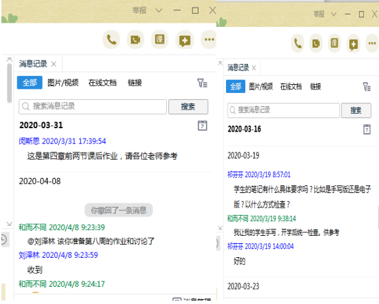 每次上课前,团队每一个老师都要求员工到学习通按时签到,签完到后组织员工到平台学习PPT,然后听龙老师的讲解,听老师讲解完后要求员工参加讨论,并完成作业。如闵斯思在每一周课程开始之前,都会通过学习通平台布置本周的学习任务,以中国大学慕课平台为支撑,结合员工情况,提前发布本章的学习目标、任务,让员工知道本章主要内容是什么,学什么、重点是什么。在课后及时布置作业、鼓励员工参与课程讨论,巩固在线学习成果,对员工的学习也起到了督促作用。做到了有准备上课。在如孙老师为了了解每一个员工的学习状态,前后更换了好几个直播平台,最终才选定了适合她和员工们的直播平台,既不影响教学节奏,还可以随时看到员工的反馈,达到课堂互动的理想效果。有时员工忘记写作业,王奎群老师经常给员工再加时,催促员工务必完成。刚开始上网络课,系统经常卡,教师克服查重困难,我有时利用周末组织员工学习。自第八周公司要求教师按课表上课,并且直播时间一小时左右,团队老师严格执行,通过腾讯会议、腾讯课堂对员工直播所讲内容。