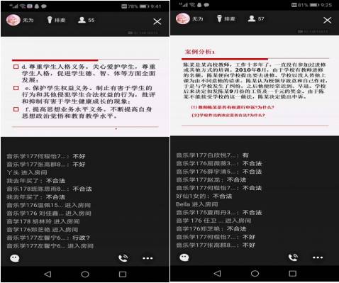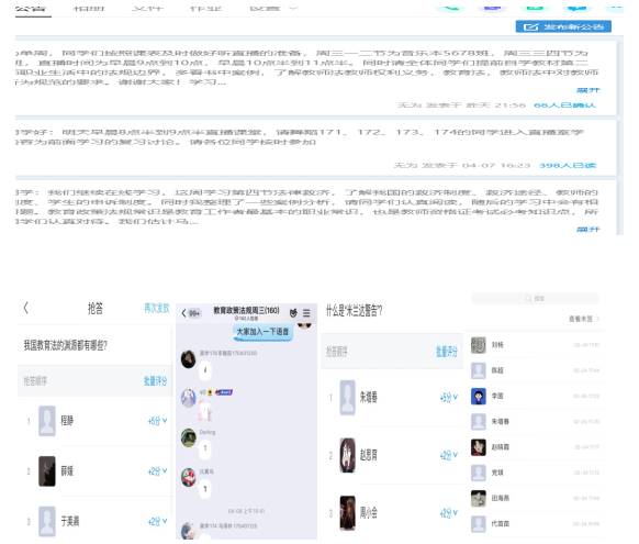 为了做好线上学习指导和督导,我们公共课设计每章单元导学,制定每节课学习任务,课前通过平台发布章节导学单和课堂学习任务,并附上相应的练习题,课后教师网上互动解答。引导员工养成课前预习、直播讨论,随堂测验、课后复习、及时完成作业和课后反思的习惯,使员工有章可循完成学习任务。针对疫情中的学习进行了调研,了解员工学习动态,从发布任务,互动聊天,到开始直播,教师和员工相互在学习的探索中掌握了教学资源的获取和学习方法。我的专业课教育管理学在学习通开设,除了要求学习交电子版的作业,还通过通知跟帖方式达到和员工的互动。其他课程在QQ群进行不限定时间与主题讨论,从家居生活能力到疫情中出现的违法事件,失德现象、英雄事迹进行讨论。80%员工都反映这种教学方式让他们都学到了很多,而且都希望开学以后能实现线上线下全方位教学,说明我们的员工在学习方面的主动性较强。30%的同学反映长期看电子产品眼睛不舒服,希望尽早开学。有些老师在互动的时候还采取了多种趣味方式引发员工的学习兴趣。比如说何陈爽老师将线上教学资源与直播方式相结合,让员工参与到课堂中来,营造轻松氛围,通过抢答环节巩固知识,通过不断地琢磨讨论,一起寻求“答案”。