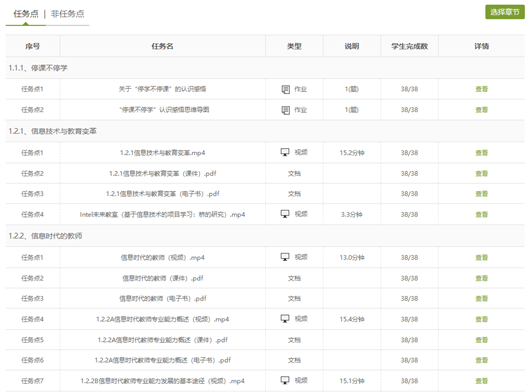 一是统筹安排课程教学计划。教学团队全面依据现代教育技术课程理论知识内容多、实践操作要求高、软件工具更新快的特点,以及在线教学活动师生准时空分离的特点,在认真研讨和充分论证的基础上,统筹安排课程教学计划。课程教学团队将理论知识教学任务前移,通过在线教学方式实施;将实践知识教学任务后置,通过传统课堂教学和上机实践操练方式实施。