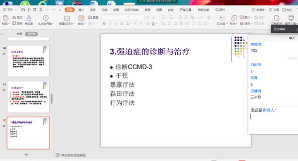 在具体运行过程中,首先告诉员工本门课程将采取线上线下混合式教学的模式来运行。在群里为员工提供了《异常心理学》的课程大纲,课程计划和进度表;同时还为员工提供了中国慕课网上首都师范大学上观芳芳教授主讲的《异常心理学》慕课链接,要求员工观看学习华东师范大学耿文秀教授的国家级精品资源共享课《异常心理学》。要求员工安装腾讯会议APP,为直播教学做好准备。