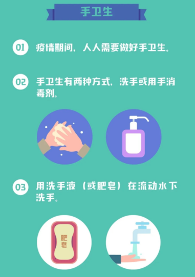 疫情期间,人人需要做好手卫生。中国疾控中心说,手卫生有两种方式,洗手或者用手消毒剂。用洗手液(或肥皂)在流动水下洗手。可选用含醇速干手消毒剂或醇类复配速干手消毒剂揉搓双手。可直接用75%乙醇擦拭双手。醇类过敏者,可选择季铵盐类等有效的非醇类消毒剂。