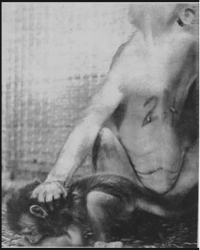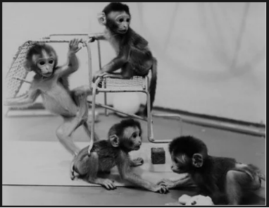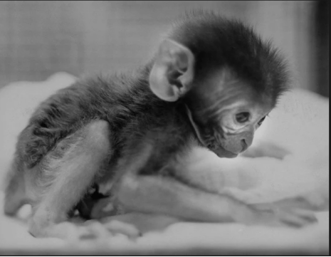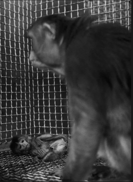 哈洛发明了一个“强暴架”,以此固定母猴身体,使公猴能够骑到母猴身上。这工具果然管用,20 只母猴受孕产下了幼猴。但可怕的事情发生了:这 20 只母猴中,